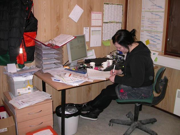 Eevalla päivä alkoi uuden työntekijän perehdytyksellä. Sen jälkeen luvassa oli paperitöitä, laskujen selvittelyä, tilauksia ja muistion kirjoittamista. Lisäksi hän pistäytyi rakennustyömaalla tekemässä kartoitusta hankittavista tarvikkeista.