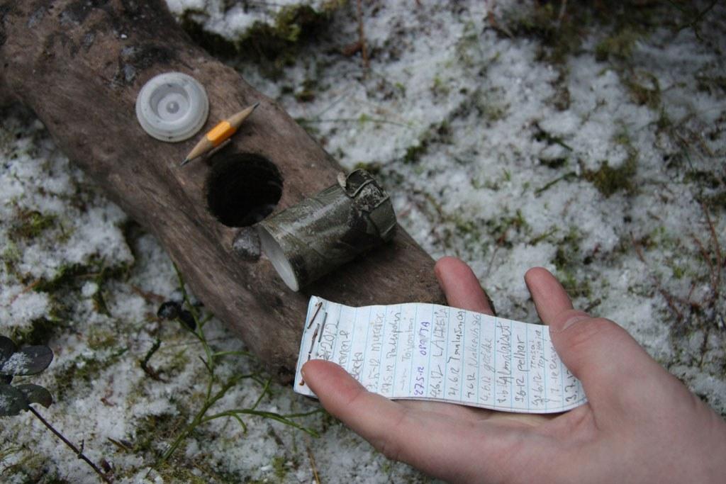 Mitä geokätköstä löytyy? Katso kuvat alta: