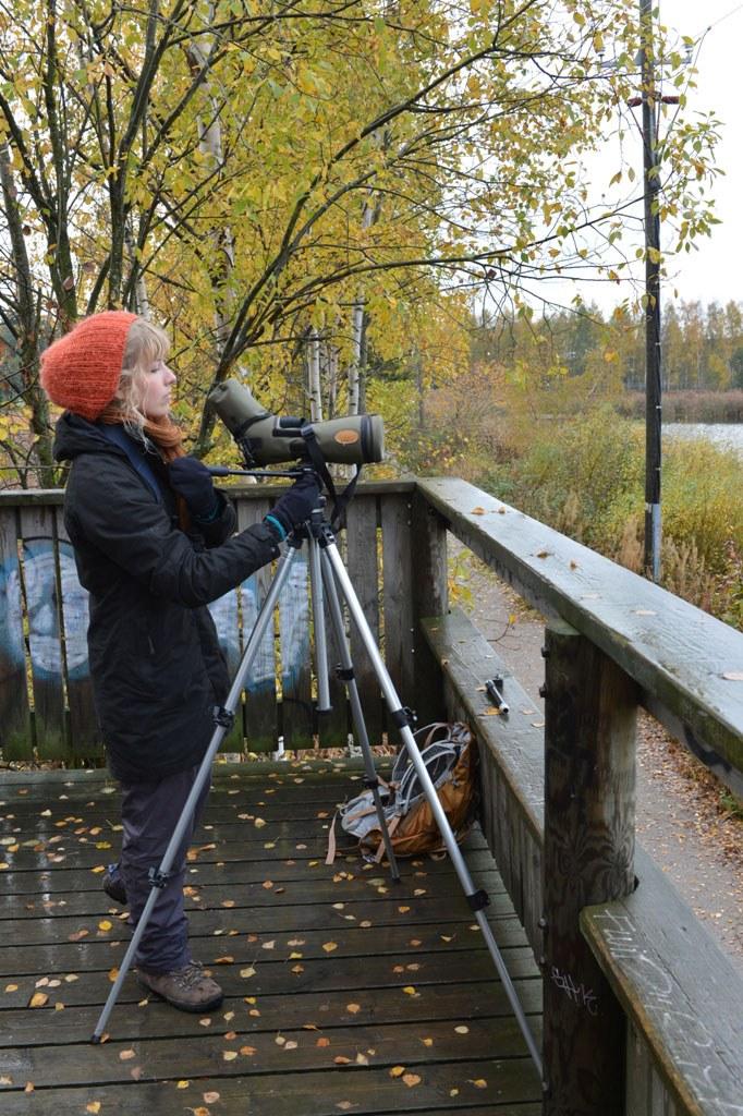 Kuvaaminen on monille tärkeä osa lintuharrastusta. Hanna ei kaikkien muiden varusteiden lisäksi tahdo hankkia kallista järjestelmäkameraa maastoon raahattavaksi, vaan kuvaa digikameralla suoraan kaukoputken läpi niin sanotusti digiskouppaamalla. Hyvälaatuisen putken kanssa pokkarikamerallakin voi saada varsin laadukkaita kuvia.